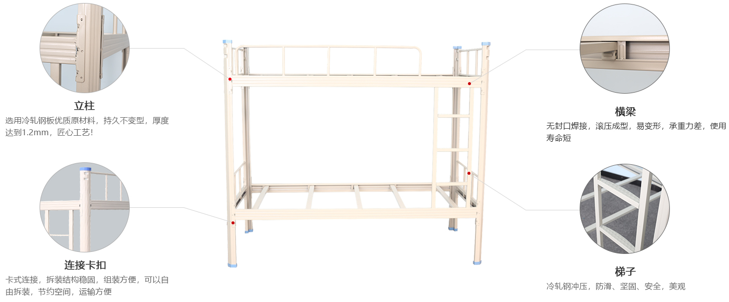 專業生產各種單層鐵床、雙層鐵床 公寓床等產品廣泛用于學校工廠工地等